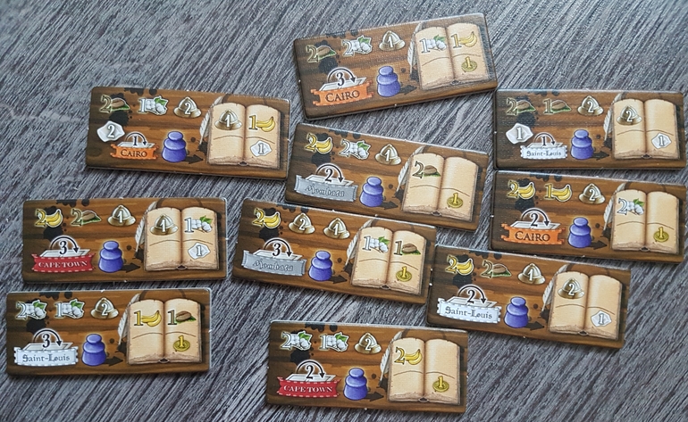 Художники - вездесущий Клеменс Франц и Андреас Реш, который приложил руку к другой игре Александра Пфистера - Великий Западный путь, и от картинки на коробке хочется стонать и плакать. Не нашла информации, кто за что отвечал в данной игре, но получилось вполне достойно. Приглушенные, слегка пыльные цвета помогают почувствовать себя в пустыне, в Африке. Хотя кого я обманываю, ведь перед нами евро-игра.