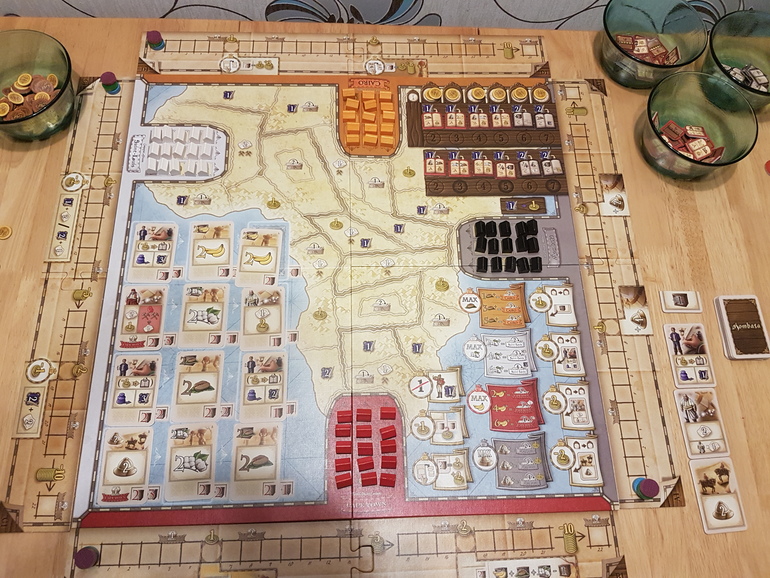 Бананы меняем на хлопок, хлопок на бухгалтеров, бухгалтеров на книжки, колонизаторов на домики, кофе на акции, на сдачу движемся по трекам . Тут не до атмосферы. Да и зачем нам атмосфера, когда в игре намешана куча механик. Тут и мини-декбилдинг с планированием стопок сброса, и ареа-контроль, и выставление рабочих, и сбор сетов.