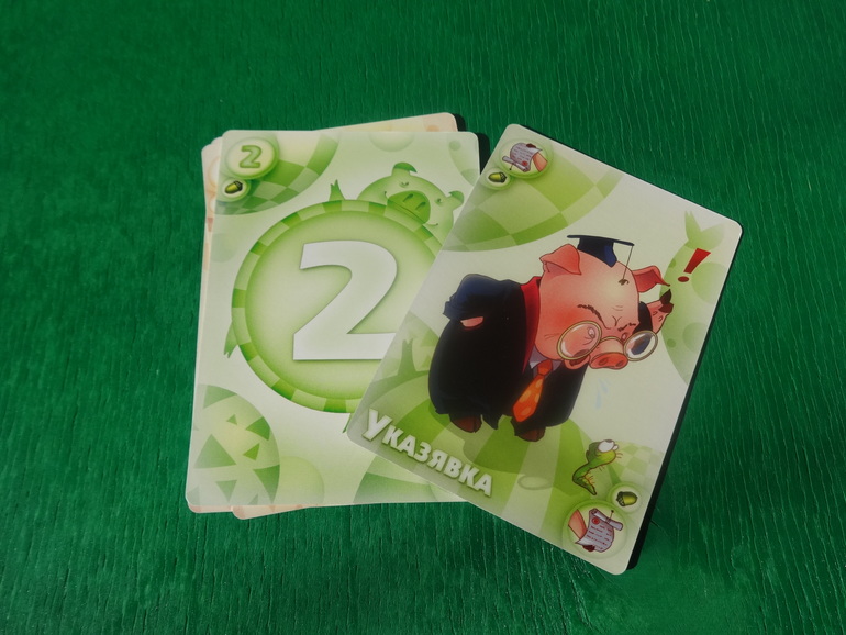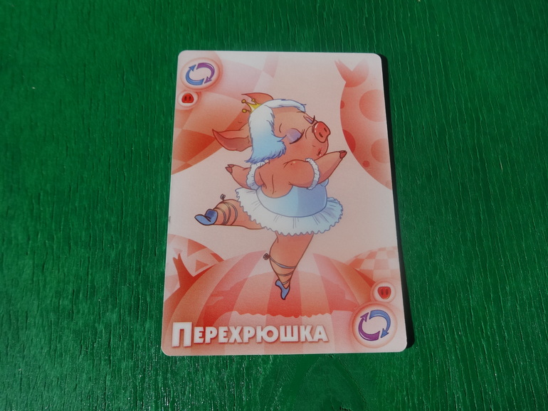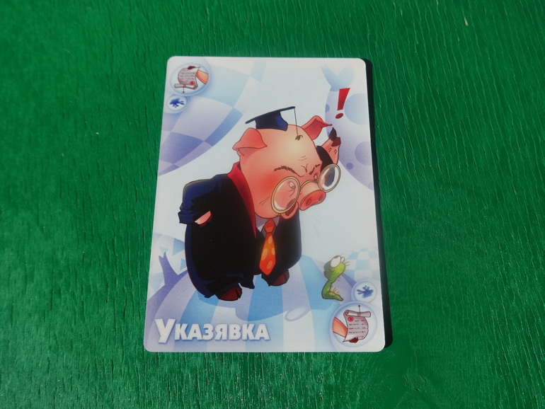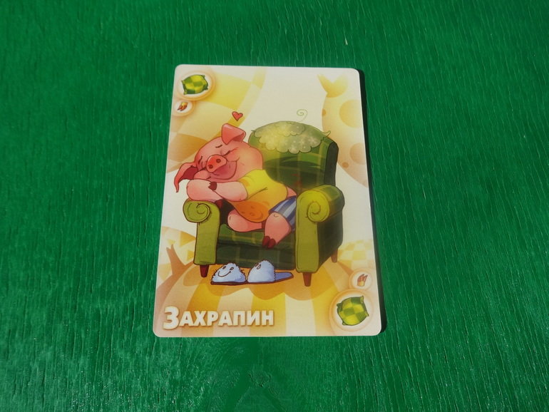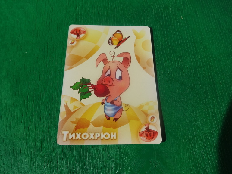 Тихохрюн. До твоего следующего хода все обязаны молчать. Кто проронит хоть словечко, получит штраф в 2 карты: