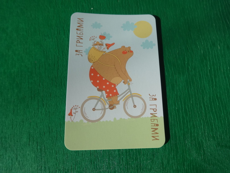 "За грибами". Как только кто-нибудь выложил карту "За грибами", все игроки максимально быстро должны ударить по колоде выложенных карт. Кто сделает это последним, то и забирает себе всю стопку: