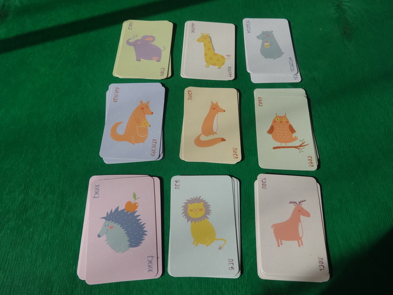 Имеется: по 4 карты каждого вида животных: