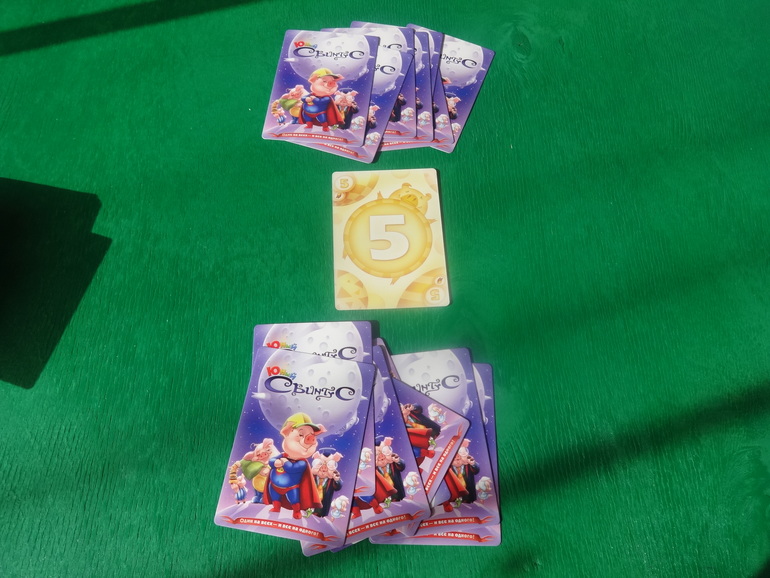 Далее игроки по очереди выкладывают от 1 до 5 карт, и называют одного животного.