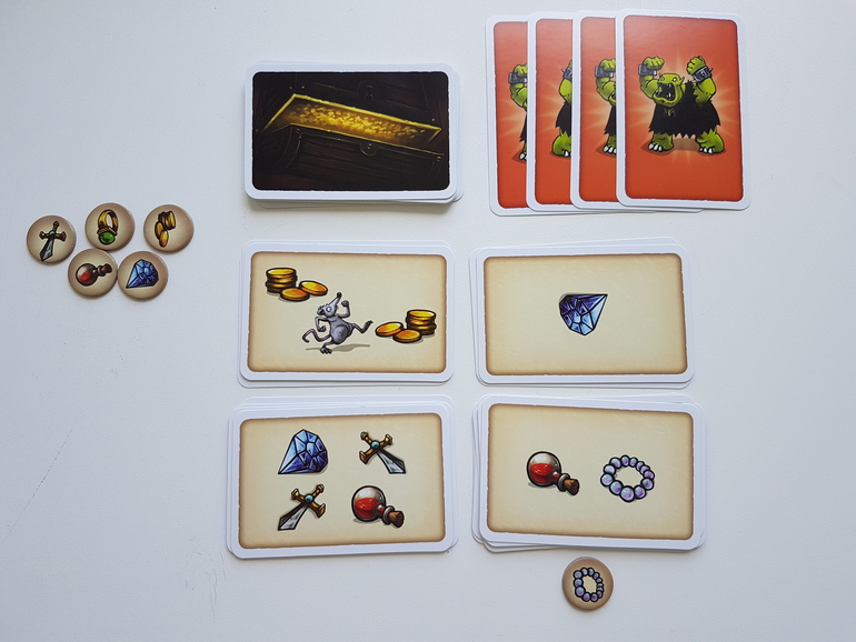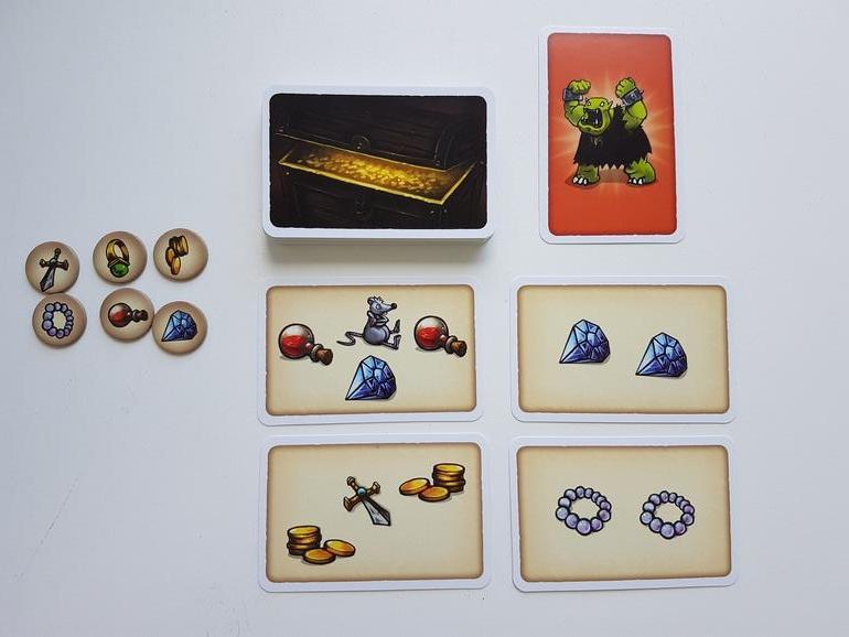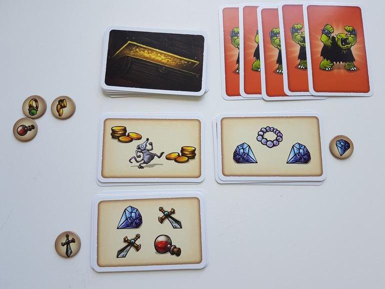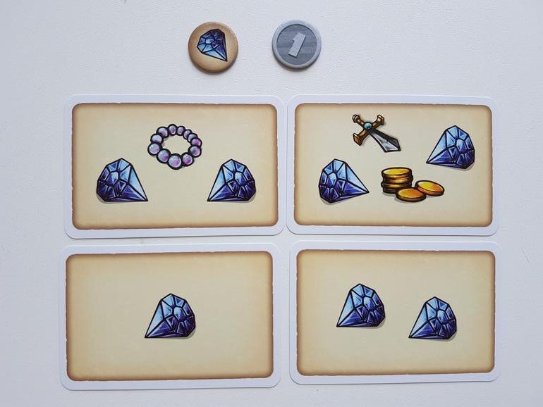 Еще два гнома со страхом хватают свои мешки и бегут. Игроки в свой ход берут жетон с сокровищем, выбирают стопку, где по их мнению, именно этого вида драгоценностей много, и забирают себе.