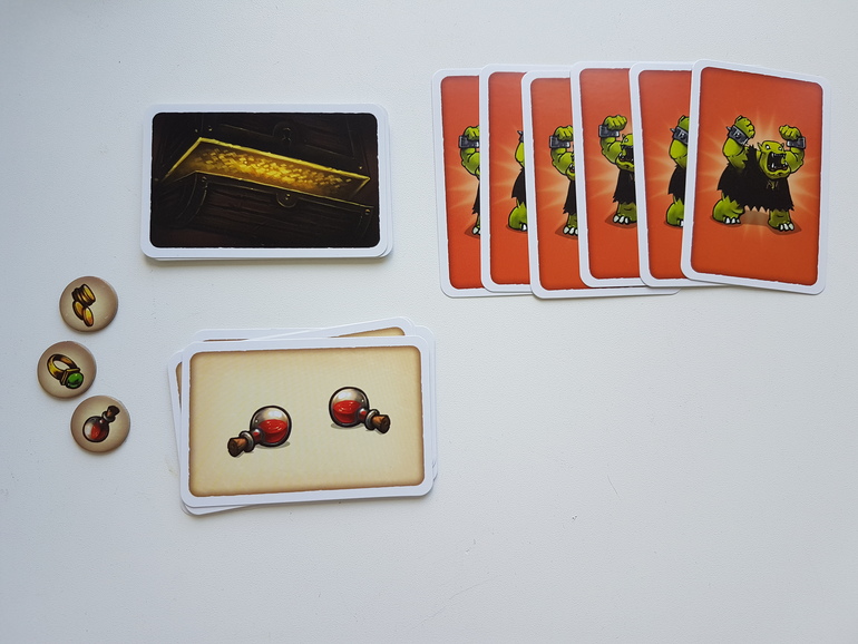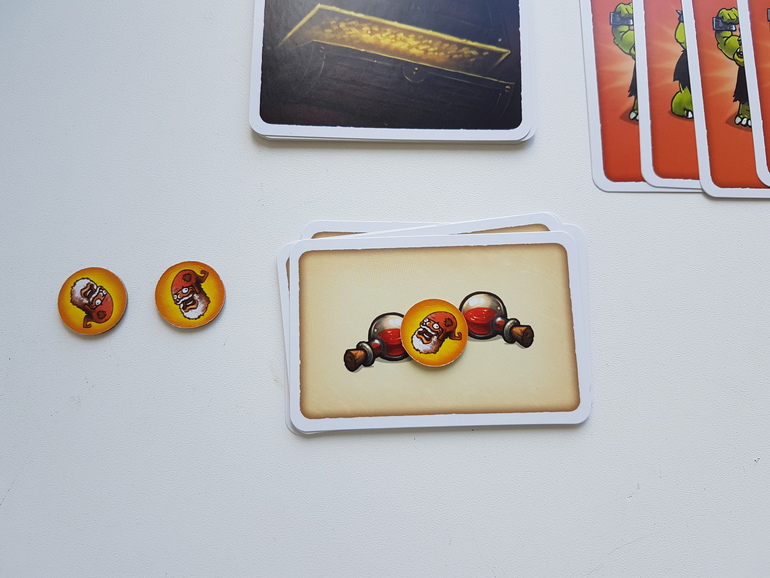 Игрок (или игроки), который не забрал себе сокровища до выхода шестой карты орка, переворачивает оставшиеся жетоны сокровищ рубашкой вверх, перемешивает их и кладет один из них на оставшуюся стопку (или по одному на каждую оставшуюся стопку, если их несколько). А затем забирает себе стопку карт.