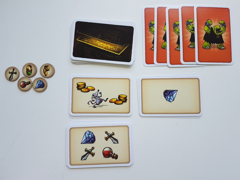 Остальные гномы более смелые, они продолжают потихонечку тащить из орочьих сундуков зелья и перстни. Но вот из колоды вышла пятая карта орка, а это значит, что хозяин уже буквально за ближайшим поворотом, судя по топоту огромных лапищ.