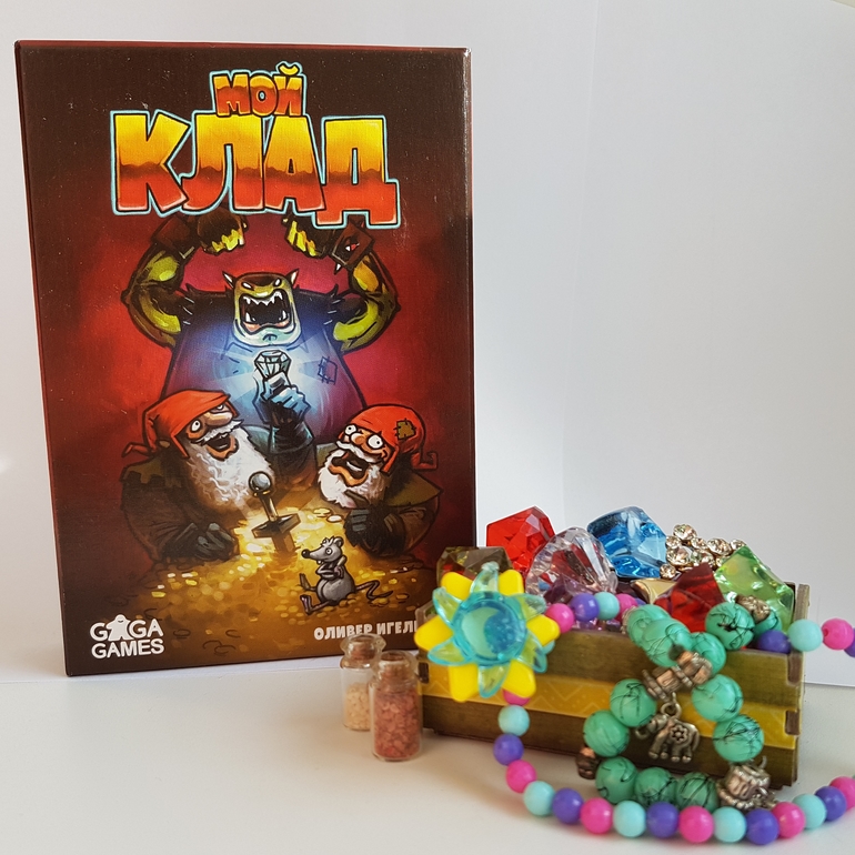 В копилку быстрых и компактных карточных игр, которые можно брать с собой в отпуск, играть на даче/в поезде/самолете да и просто положить в карман, собираясь в гости, хочу добавить еще одну довольно азартную игру - Мой клад. Игра, в которой надо рисковать, но вместе с тем сдерживать свою жадность, чтобы не потерять всё. Да, да, из тех, где надо выбирать между синицей в руках и журавлём в небе.