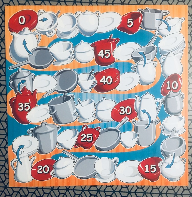 Нам очень нравится это игровое поле. Так здорово передвигать фишку по всем этим кастрюлькам, кувшинам и сковородкам.