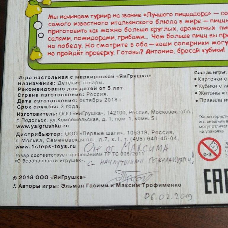 И ещё одна причина, по которой я захотела рассказать именно об этой игре. Один из её авторов подарил мне её на день рождения, что стало для меня приятным сюрпризом :)