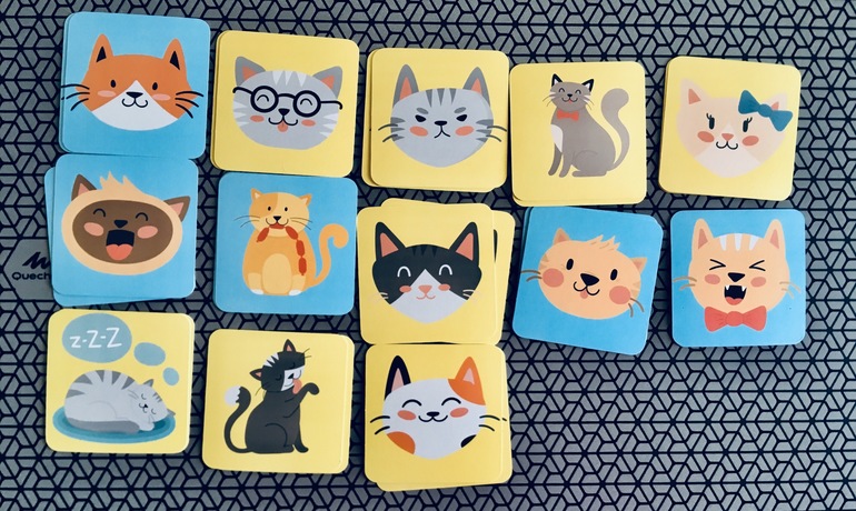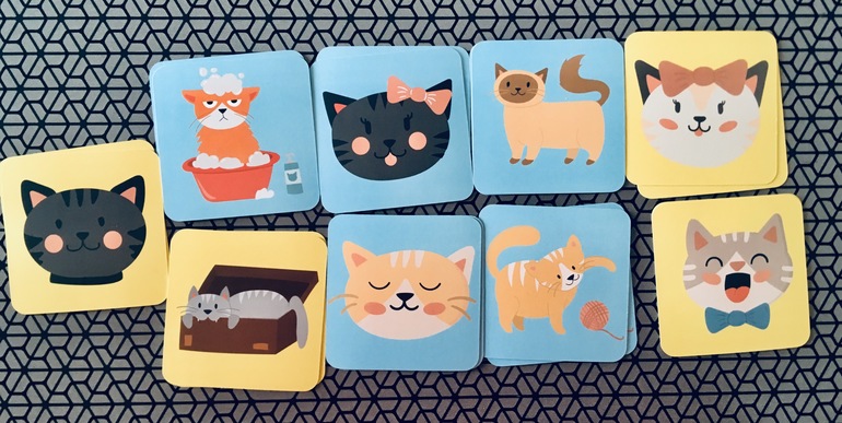 Не знаю, как Вам , а нам картинки в этой серии уж слишком нравятся. Одно удовольствие разложить аккуратные квадратики с милейшими рисунками и поискать пары. Многим котикам мы уже дали имена и прозвища. Есть у нас Розовые щечки, Влад, Соня, Мурзилка, Модник , Шиповник, Профессор и многие другие. Когда игрок открывает две карточки, остальные начинают шептать эти прозвища, так намного легче запомнить, где какой кот лежит.
