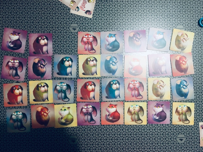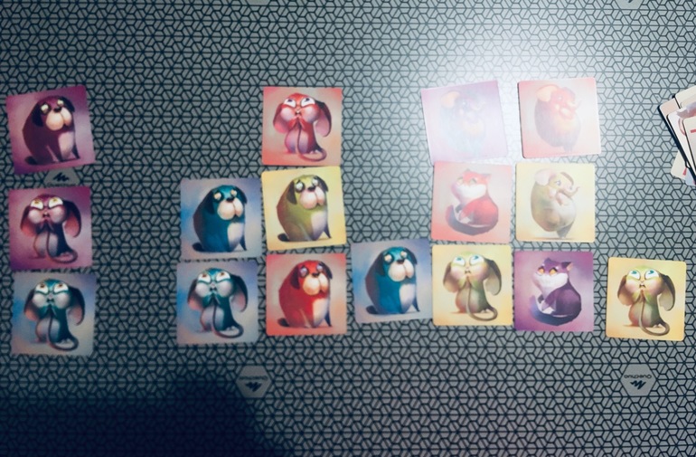 Хорошенькая, совершенно несложная карточная игра. Правила простейшие и объясняются за пол минуты. Каждому игроку в начале партии тайно присваивается цвет и тип ( слон, собака, кошка или мышь) животного. Задача: к концу игры в центре стола должно остаться как можно больше карточек Вашего цвета и типа животных. Убирать другие карты из игры нужно особым способом пугалок. Пугать можно карту, которая находится вверху, внизу, слева, справа. Слон пугает собаку, собака пугает кошку, кошка пугает мышь, а мышь пугает слона. Таким образом ненужные Вам карты в свой ход Вы будете отправлять в сброс, пытаясь сохранить как можно больше тех, что нужны Вам.