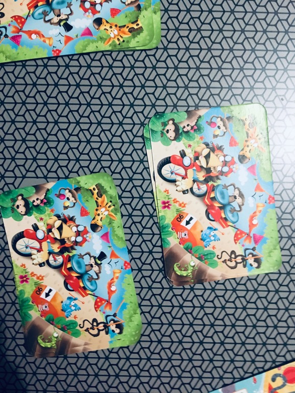 Эта игра особенно нравится моему сыну, но исключительно в кооперативном режиме. Он всё время хочет побить предыдущий рекорд по собранным за минуту парным карточкам, но пока наш максимальный результат- 13 очков. Ни разу ещё не получилось больше. Сегодня сыграли 7 партий. Три раза набрали 11 очков. Было и 5, и 7. Трудно за такое короткое время среди 135 где-то похожих двусторонних карточек отыскать ту единственную пару или трио. Так что нам есть к чему стремиться.