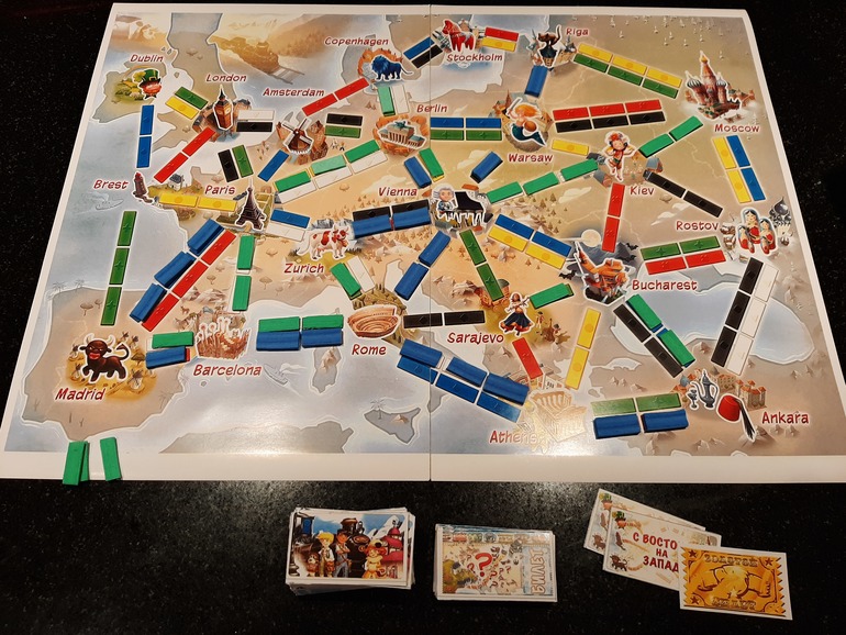 Поле у нас состоит из двух А3, а карточки уместились на трех полотнах А3. Надо только карточки по-английски продублировать, а то наши друзья по-русски читать не умеют.