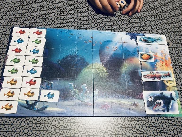 Ещё одна несложная, но до чего же прелестная игра. Нравится всей семье. Возраст от 5 лет рекомендованный, а у нас появилась, когда детям было 7 и 10. И отлично подошла на этот возраст. Да и родителям играть не скучно. Моему мужу, например, дорога на риф очень нравится. Единственная наша проблема, дочка никак не хочет создавать одинаковые условия для меня и сына, всё время щадит моих рыбок, чем вызывает абсолютно справедливое возмущение нашего мальчика. Или ещё дочка начинает продвигать к финишу нейтральную рыбу, чей выигрыш не принесёт никому победу. Не пойму, почему в этой игре она всегда вредничает.