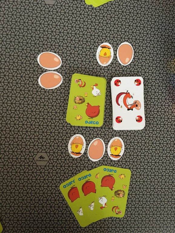 • сбросить комбинацию карт: петух, курица, гнездо, затем взять яйцо и положить перед собой;