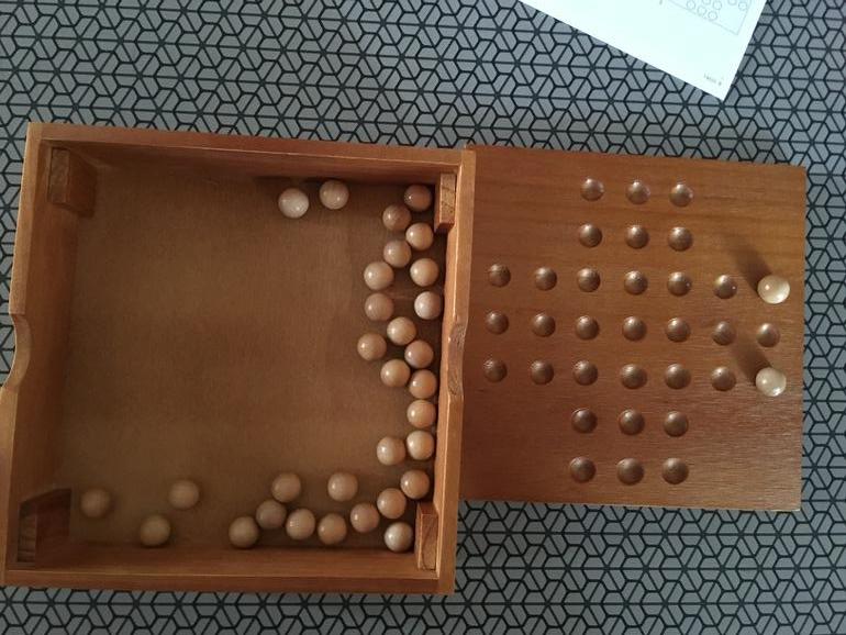 Я не знаю, в чем секрет, но в ту поездку сын решил 5 заданий, особо не затрудняясь. На 18-м застрял. Я в течении недели играла и играла в Солитер, пыталась одолеть его, оставив один шарик на игровом поле. Но нет, никак мне не удаётся покорить эту вершину, два шарика то тут , то там остаются в финале. Один лишь раз я смогла закончить партию так, что шарики в конце были расположены через один, т.е буквально чуть-чуть не хватило, чтобы победить и выдохнуть.
