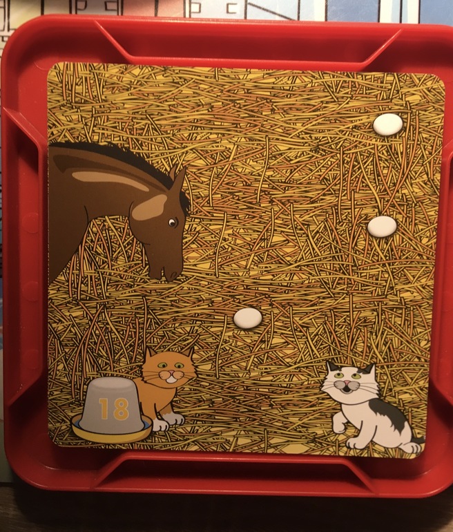 Таким насыщенным на неделе выдался лишь понедельник. Дальше кратко. Выручали нас и головоломки. По дороге на занятия дети играли в шарик орбо, курочек наседок и кубик рубика. Недавно в сообществе спрашивали, будет ли интересен орбо шарик семилеткам. Моей дочке 10 лет, сыну 8 лет. Оба играют с большим интересом . Во вторник ехали с дочкой вдвоём, минут 20 она возвращала маленькие шарики на свои цветовые места, которые я предварительно разбросала в чужие домики. Затем достали курочек -наседок. Дочка попыталась решить второе задание, но ничего не получилось. С сыном на этой неделе тоже возили с собой курочек в транспорте. Выяснилась интересная подробность. Решать с задания с 4 по 12 у сына не получается. От слова вообще. И тут неожиданно сын увидел карточки с животными и попросил перескочить сразу на 13 задание. И дело пошло.