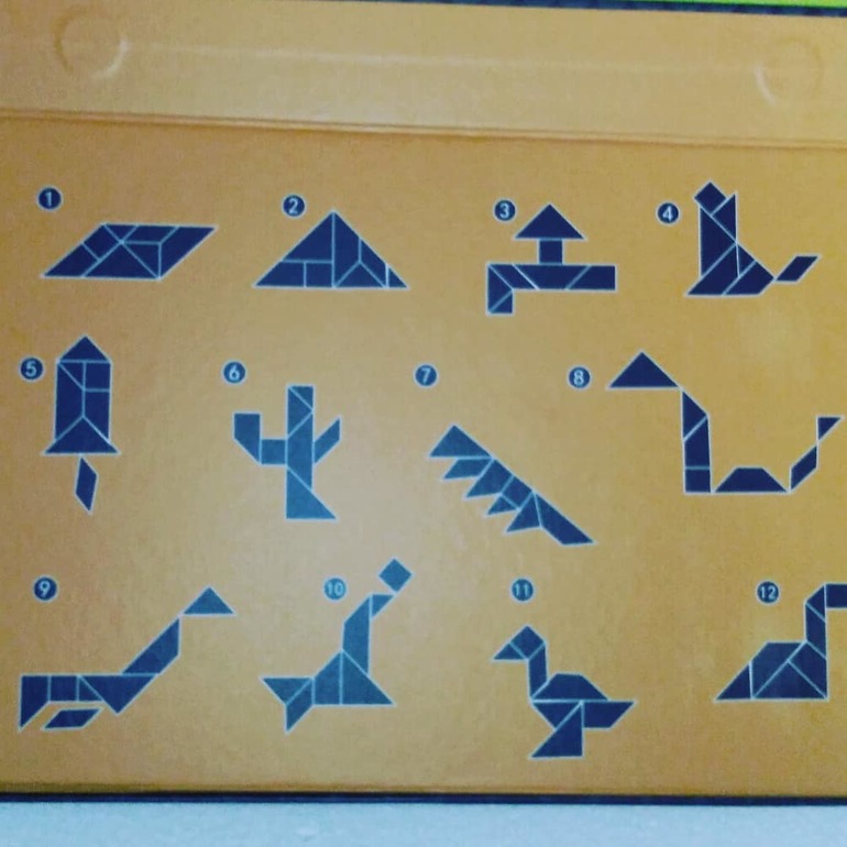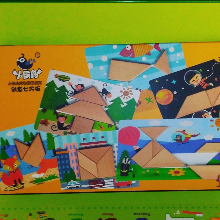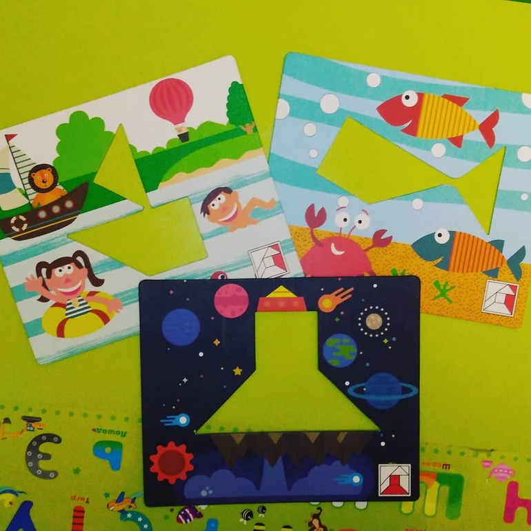 Когда же начинать играть? У нас появился, когда сыну было 2,10, уже поздновато,т.к. маленькие карточки сделал на ура, с большими покопался, сейчас используем сам танграм - на заполнение поля и выполняем по образцу. Дополнительные задания можно найти в просторах интернета, их множество. Играя в танграм ребенок получает удовольствие и при этом развивается!