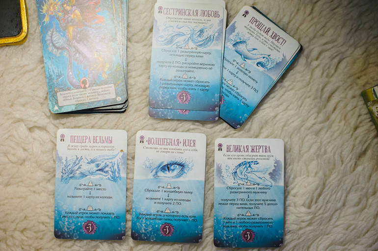 Я когда-то случайно увидела эти коробочки в категории "карточные игры", и признаться чесно, положила в корзину из-за своей любимой сказки о Русалочке. И своеобразный современно-сказочный арт понравился. Но Русалочка, как и Золушка, и еще Белоснежка и Красная шапочка - это дополнения, а игра и без них хороша.