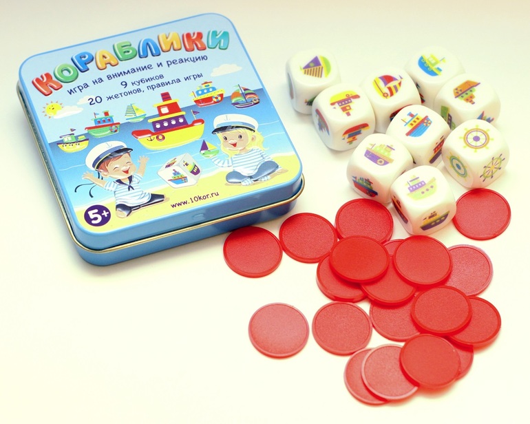 Напоминают игры из серии Шпаргалки для мам, там тоже много игр с кубиками и жетончиками, только тут же ещё коробочка металлическая.
