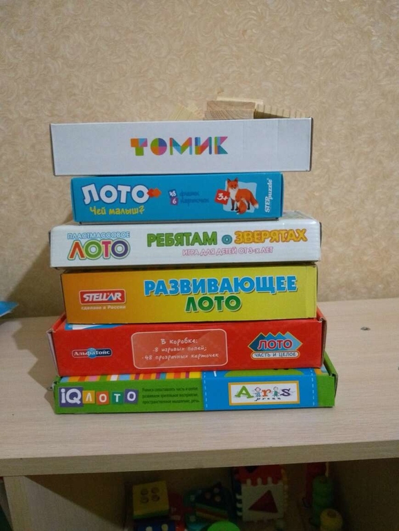 7. Собственно первые настолки - лото, домино, Каркуша маленький сад, Лапочки и Гусенички.