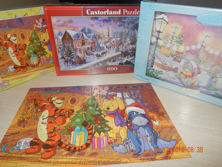 А я поболтать не успеваю совсем. Пазлы - это, к сожалению, не наше все))) Давичи прикупила, старшему до Нового года поручила собрать, не успевает. Младшему будут подарены на НГ. Посмотрим, может и проявит интерес. Большие пазлы, сложные в сборке, сложно разобрать. Лежат они собранные годами, и разобрать жалко и пристроить некуда. Я собиралась в общем коридоре повесить, но соседка "дорвалась" до ФиксПрайса, теперь в коридоре бабочки, картинки и наклейки, аж глаз дергается, пазлам места нет.