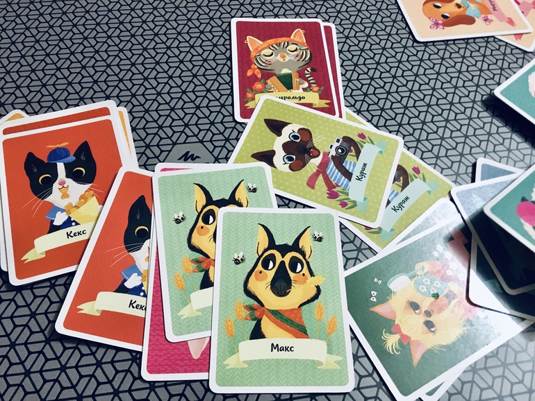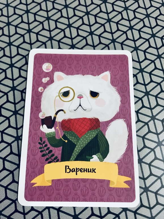 Каждый раз не нарадуюсь, что купила эту коробочку. Мы все в восторге от этой простой и всем известной игры, но в таком милейшем исполнении. Сыграли две партии. Один раз с карточкой Кот в мешке, во второй раз случайным образом вытащили одну карту, так что до конца партии понять, кто именно оказался в этот раз Котом в мешке, было невозможно. Оказался им мой любимый Вареник.