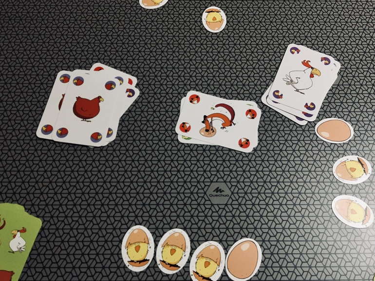 Выбор дочки. Игра появилась у нас осенью, но я тогда сразу поняла, что будет нами любима, и не ошиблась. Детям очень нравятся прелестные цыплята, играем много, и, абсолютно точно, возьмём эту игру с собой в отпуск. Выиграла я.