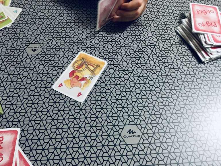 Выбор сына. Ох уж эти свинки. Игра в десяточку для обоих моих детей в возрасте от 7 лет и пока дочке 11, запишем до 11 лет. Мы с сыном играли и 22 партии подряд, мне потом эти свинки мерещились на каждом углу, один раз я даже в магазине , когда клала 10'рублей в монетницу, добавила слово «свинок» по инерции. Сейчас играем уже не с таким фанатизмом, но если уж достали, то остановиться на одной партии всё равно не выйдет. И тоже только чудесные эмоции, всегда шутим, смеёмся. Сыграли две партии, оба раза выиграл сын.