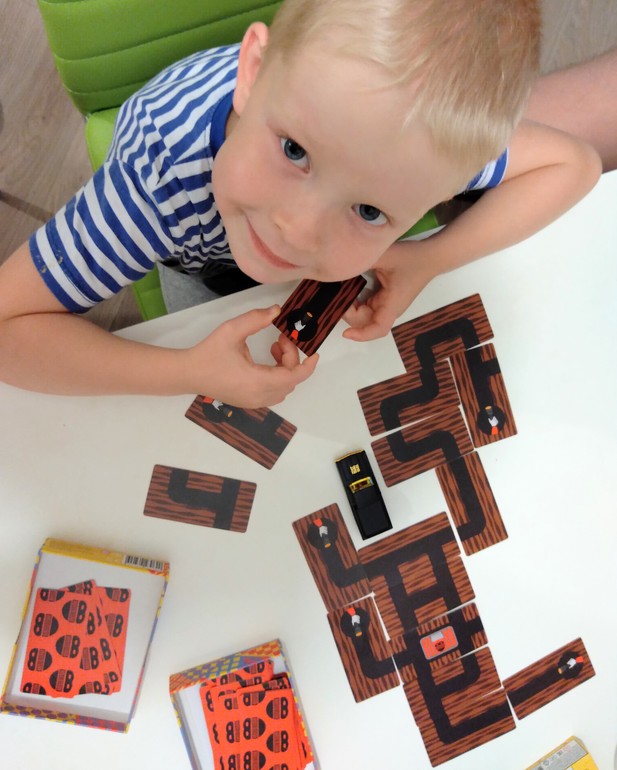 Сын с первых партий раскусил механику игры. Нельзя выкладывать карточки так, чтобы выходов после хода становилось больше, чем было, лучше сбросить. Бабушку за такие оплошности очень ругал))) Партии получались быстрыми и слишком простыми, а хотелось ЛАБИРИНТОВ. Поэтому правила решено было изменить.