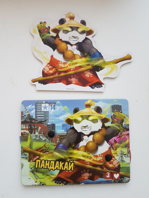 В одной из партий моя сестра, играя за Мехадракона, разыграла карту "Цель обнаружена" и положила на планшет Ксюши жетон мишени. Это означает, что если в течение игры сестра будет наносить монстру дочки урон, то к выброшенным на кубиках лапам добавляется еще один удар. Очень ощутимо оказалось. Но сестра на этом не остановилась 😀. В один свой ход она выбросила на кубиках две лапы (то есть нанесла нам по 2 удара), жетон мишени добавил дочке еще удар. И тут сестра достает еще одну карту мутации - Меха-взрыв. Мы теряем еще по 2 жизни! 🙈 Для дочкиного Пандакая эта карта оказалась фатальной, он был сражен наповал, потеряв за этот ход все свои 5 жизней.