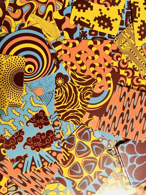 А я потом ещё приклеила все эти квадратики на остатки подарочной упаковки и у карточек появилась рубашка.
