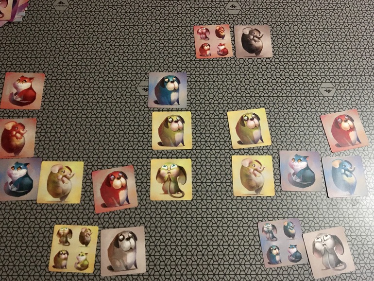 Совершенно несложная игра, но хорошая, смешная. Я уже писала летом о ней более подробно. Нам нравится, играем всегда втроём. Дети обожают момент пугания, они всегда не просто убирают карточку из игры, а обязательно произносят вслух, например, «мышь ПУГАЕТ слона» и смеются. Необязательная к покупке, но и не лишняя для разнообразия. Похожих игр у нас вроде и нет, вернее, есть Чероке- игра про индейцев, отдалённо что-то общее в моменте выбывании карточки есть, а из тех , что сейчас продаются, точно нет. Мы всегда играем в Попался хотя бы две партии. Вот и в этот раз не изменили традициям. Оба раза выиграла я.