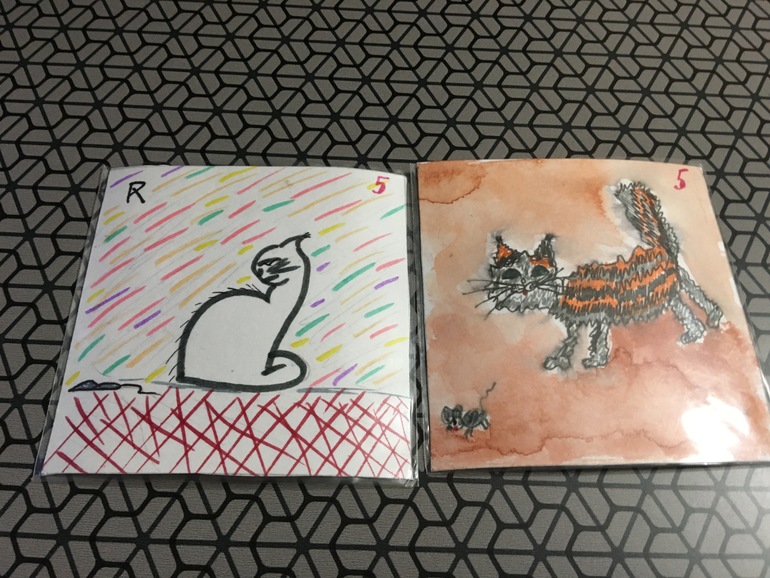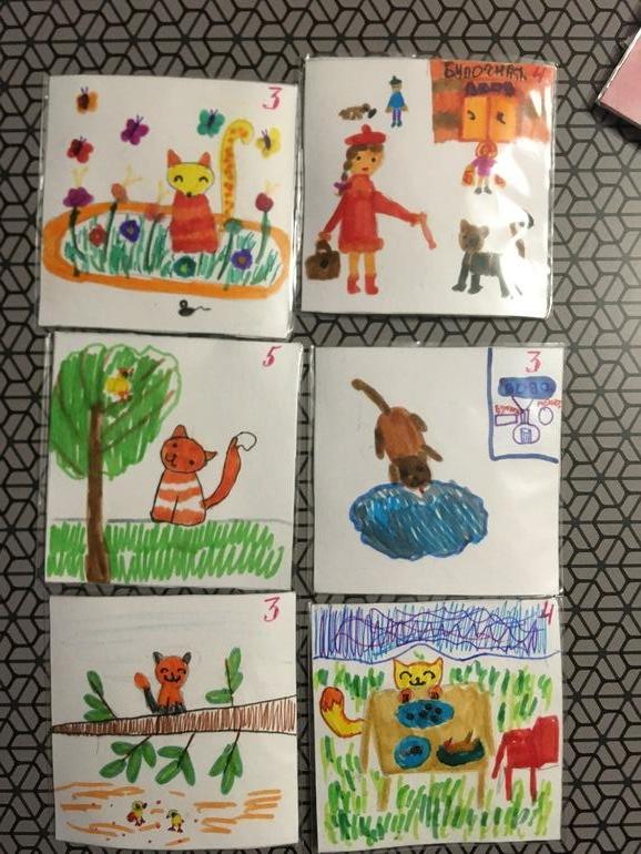 Котов , кошек и котят рисовали все, даже мы с мужем, предварительно разделив пустые карточки.