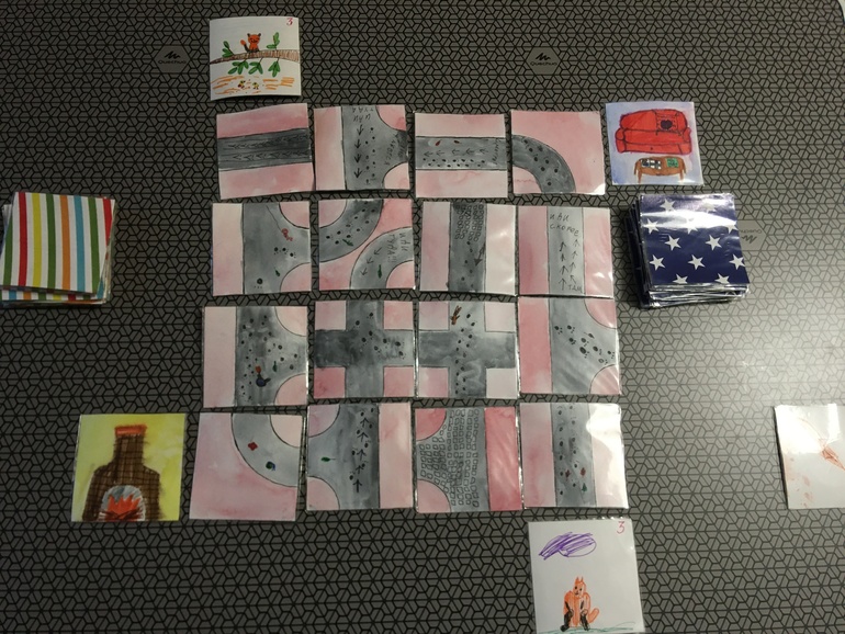 Я не ожидала, что моя идея настолько увлечет всех членов семьи. Сын впечатлился больше всех игрой, с таким трепетом он перебирал вчера карточки, рисовал, складывал, много говорил о воспоминаниях потом. Муж нахваливал наше произведение и даже с какой-то гордостью передвигал квадратики во время игры. Дочка просто радовалась, рисовала , придумывала сюжеты. А я всё это созерцала, слушала и думала, как мало нужно для счастья иной раз. Я подумала, вот будь у меня такая игра в детстве, как бы захотелось достать её сейчас, поперебирать карточки и вспомнить молодых родителей, живых , здоровых, веселых, себя маленькую, лица, склонившиеся над столом в поиске прокладывания дорожки и уют того, самого родного дома, в котором прошло детство. Может и наши дети сохранят эти смешные рисунки и когда нибудь через много лет вспомнят эти счастливые дни. Я очень рада, что мы смогли воплотить мою идею в жизнь. Играли в лабиринт, конечно, много. И вчетвером, и вдвоём, возвращались к нему в течении дня, раскладывали снова и снова.
