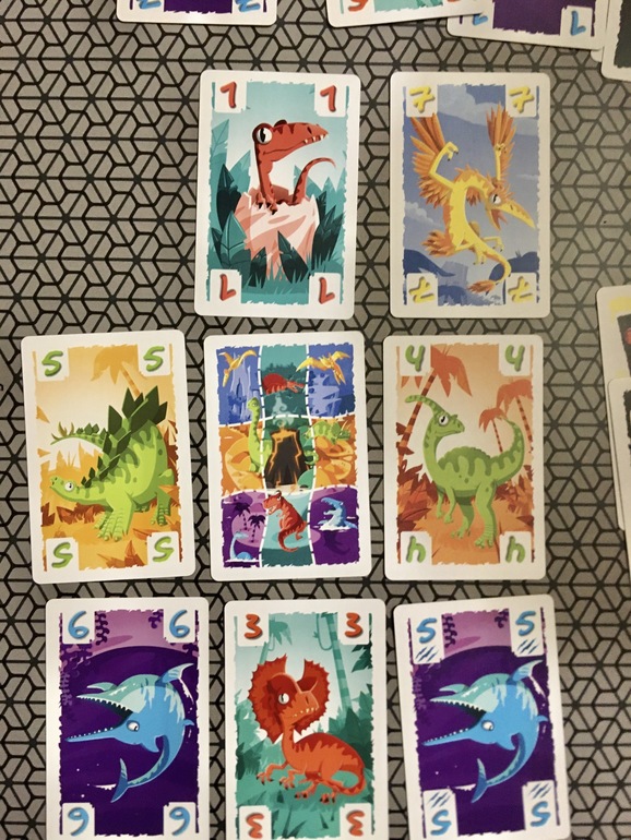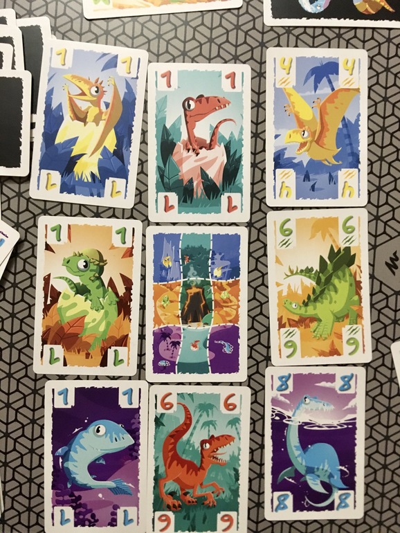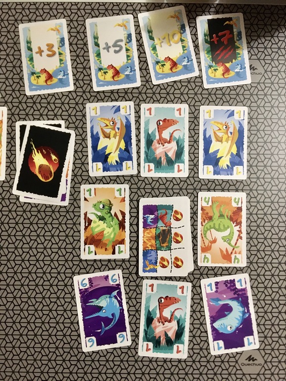 Тоже остров, с которого нужно спасти теперь уже динозавров и пересилить их на свой собственный остров. Необычная игра, красивая, интересная. Рекомендована с 7 лет, появилась у нас, когда сыну только исполнилось 7, трудностей никаких не возникло с пониманием правил. Игра очень понравилась и мне, и детям, особенно сыну. Быстрая , длится всего 10 раундов, ходы игроки делают одновременно. Происходит это так, открыли карту события, выбрали карты с руки, одновременно вскрыли, разобрали динозавров с центрального острова, снова открыли карту событий, снова выбрали карты с руки, снова разобрали карты на свои острова. Финал в этой игре всегда подступает неожиданно. На мой взгляд, отличнейшая карточная игра, однозначно, достойная внимания, особенно, в период скидок. Сыграли одну партию втроём, выиграл сын, обогнав дочку на 2 балла.