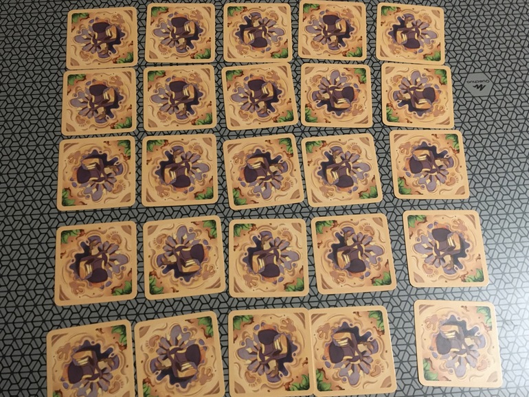 В коробке 135 двусторонних разноцветных квадратиков. Узоры-узоры-узоры. Среди всего этого многообразия встречаются жутко похожие, но не одинаковые. А одинаковых всего по две карточки, в некоторых вариациях по три. Одинаковые карточки нам и приходится искать. Играем мы чаще всего в кооперативном режиме, именно так нравится моему сыну. Это режим на время. Устанавливаем таймер на одну минуту. И каждый начинает ворошить карточки, переворачивая их туда-сюда, кричать, искать, торопиться. «Здесь пластинки» «Куда дели мои цветы» «Здесь лежало то, что мне нужно». Именно эти фразы чаще всего можно услышать во время минуты поиска. Как только минута истекает, начинаем подсчёт парных и тройных находок. Пара карточек приносит 1 победное очко, тройка одинаковых карточек- 2 победных очка. Вчера, играя втроём, мы насобирали максимально 22 балла. В правилах есть таблица, которая помогает оценить уровень мастерства. Согласно этой таблице- мы эксперты. Чтобы стать гениями , втроём нужно получить 27 баллов и выше. Нам пока не удавалось ни разу. Затем дочка пошла играть в куклы, а мы с сыном сыграли ещё раз 10 в твинити вдвоём, исключительно по инициативе сына. Вдвоём нам не везло, больше 12 балов нам не удавалось заработать. Возможно, сказалась усталость глаз, перебирать в поисках всё это буйство красок- нелегкая задача. Отличнейшая игра в увлечённой компании. Мой сын- самый лучший мой напарник в этой игре, азартный и целеустремленный.