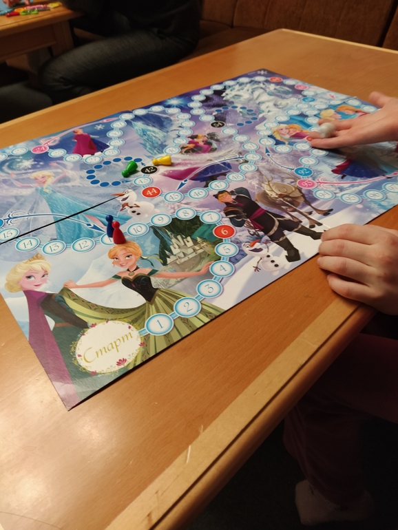 Потом у дочки сейчас хит мультик про Холодное сердце 2. Она с удовольствием сыграла в ходилку т.к. все отказались в нее играть, пришлось маме.