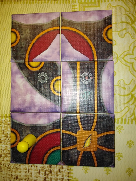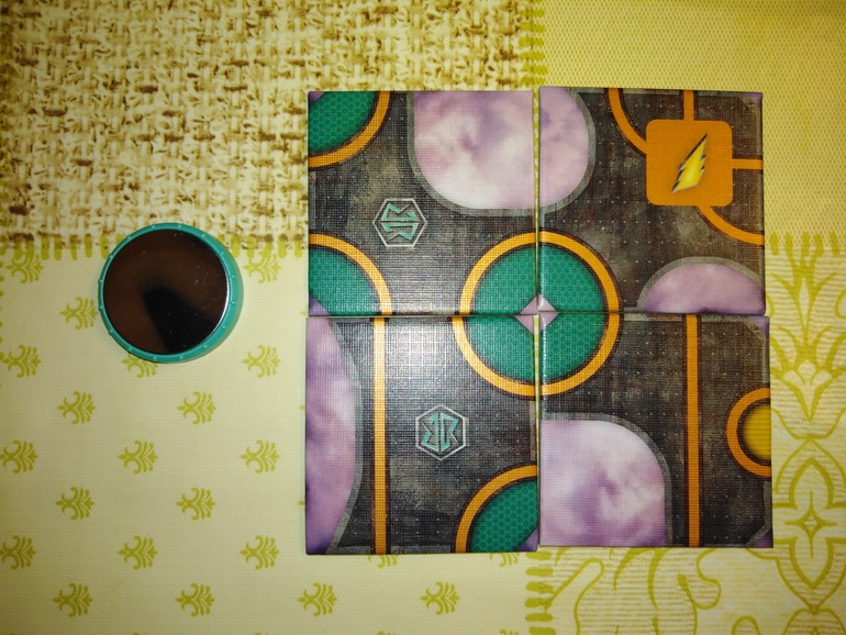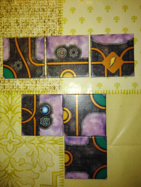 Удобнее всего начинать со стартовой площадки и дальше вокруг в кружок компоненты выстраивать. Но у меня тайлы для стартовой площадки пришли в середине игры. Я уже практически использовала все необходимые для строительства компоненты, пока установила стартовую площадку. А потом не знала как все соединить в круг.