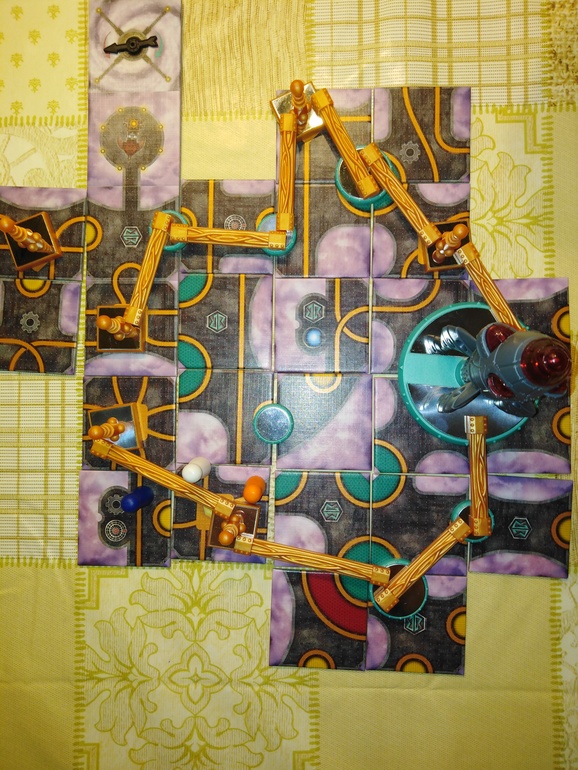 В отличие от Запретного острова и пустыни, где все разбегаются в разные стороны, в этой игре все ходили рядышком. С одной стороны удобно, друг друга можно подлечить, если ты медик или специалист по узлам. А с другой смысла разбегаться нет, потому что понастроить в другом конце можно что угодно, при этом израсходовав все детали, но не факт, что потом сможешь соединить все в круг.