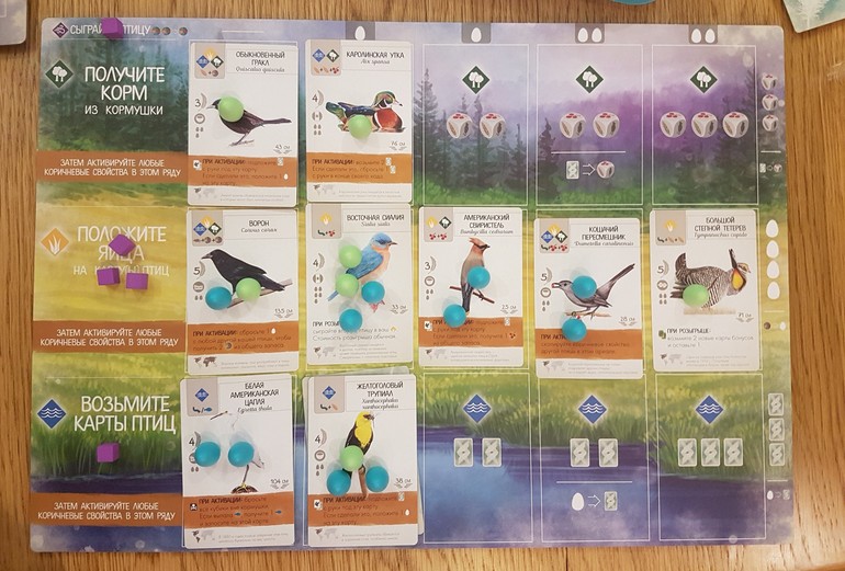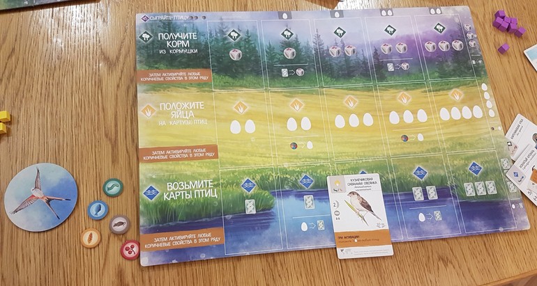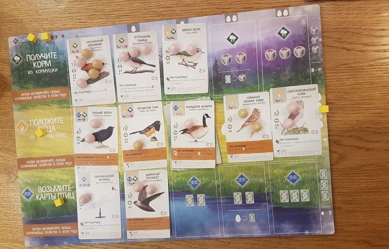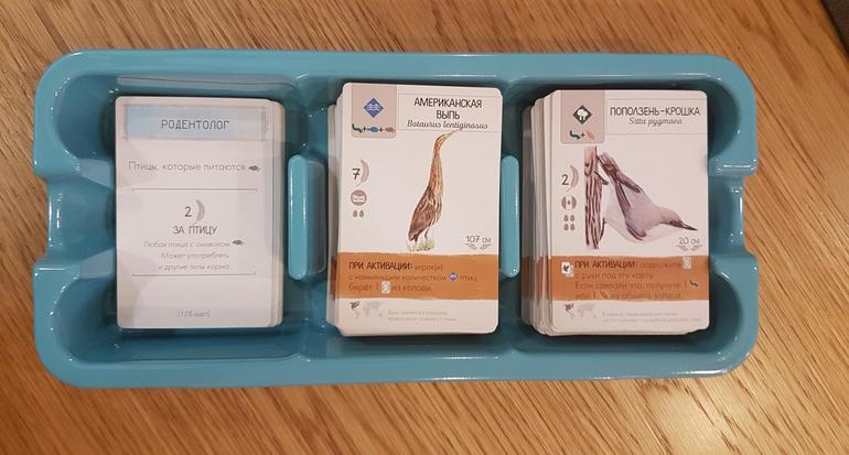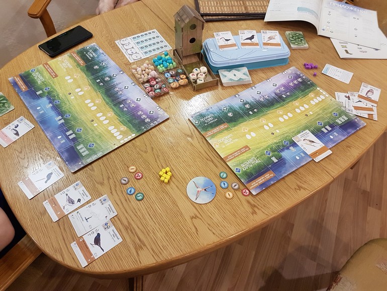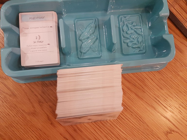 При этом игра достаточно рандомная. Приход карт предугадать невозможно, так как их 170 штук. Даже если они начнут повторяться спустя какое-то количество партий, сочетание всё равно будет другое. Это и делает её на мой взгляд такой привлекательной. Не получается встать на рельсы и поехать, приходится каждый раз решать как играть с имеющимся набором птиц и бонусов.