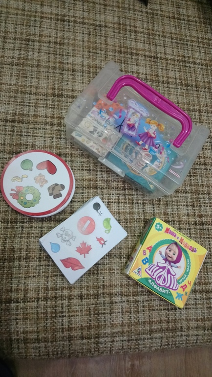 Шестая. Игра доббль. Когда то три года назад мы с дочкой попали на игротеку местного магазина настольных игр. Дочке было пять. Доббль была одной из игр, в которые мы играли. Игра тогда понравилась, но купить её за полную стоимость у меня желания не было. И вот позапрошлой осенью, я нашла пнп игры, распечатала её в полиграфическом салоне и игра стала одной из первых самоделок. Уже потом я купила аналоги на сима ленд. Играем очень часто, особенно заиграли карточки когда дочка пошла в первый класс. Игра на скорость реакции и внимательность, как раз то что надо первоклашке. С младшей дочкой в 4 года, играем на равных, со старшей я всегда проигрываю. В этот раз вообще взяла только 10 карточек за две игры.