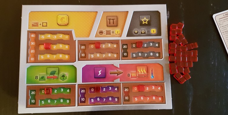 Сыграли мы пока только одну партию на троих с начальными корпорациями, дающими 42 мегакредита и производство всего по единице. То есть у всех одинаковые стартовые условия. Правила несложные, игровой процесс тоже. Сложность по bgg 3,23. Я почему-то думала, что игра значительно сложнее.