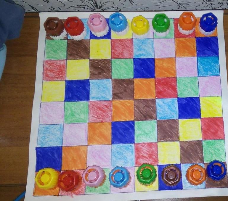 самодельные игрыПрочитав сегодня отзыв Ольги о Камисадо я решила порадовать своих любителей шахмат( это муж и старший сын). Участвовали в создании игры всей семьёй: муж чертил,старший сын помогал раскрашивать,младший раскидывал карандаши) Вот что у нас получилось