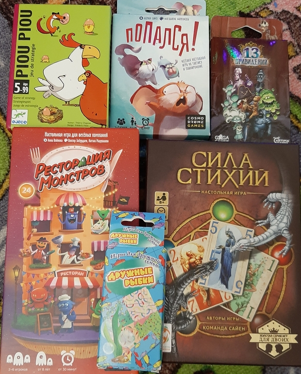 Смотря на эту стопку, испытываю невероятное чувство радости, что в 2019 году были и возможность, и желание приобрести эти игры) Процесс съемки стопочки затянулся, потому что ребенок периодически восклицал, ооо, моя любимая, давай поиграем)) Любит Ищи Пищи, Уно тачки, Веселые гонки, но все таки его игра года однозначно Каменный век, обожает ее)