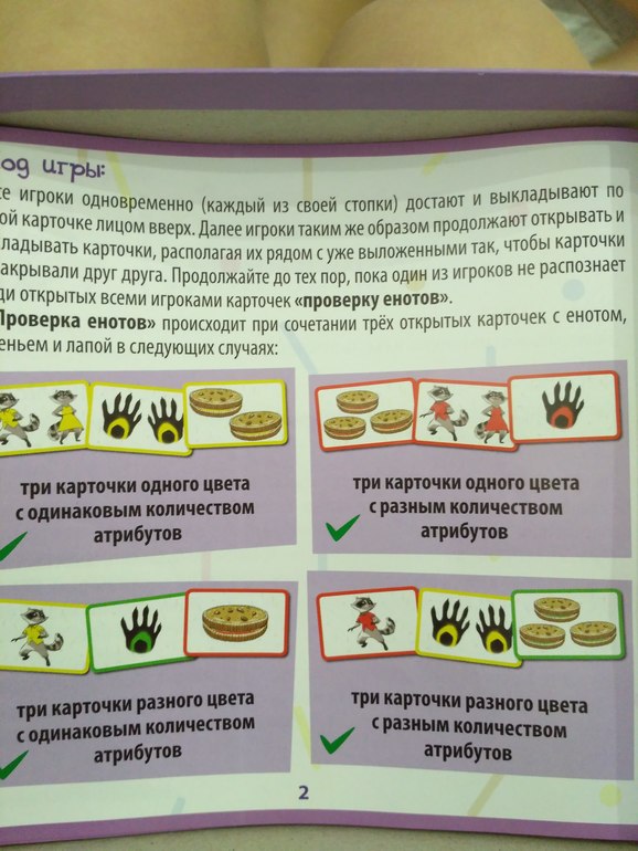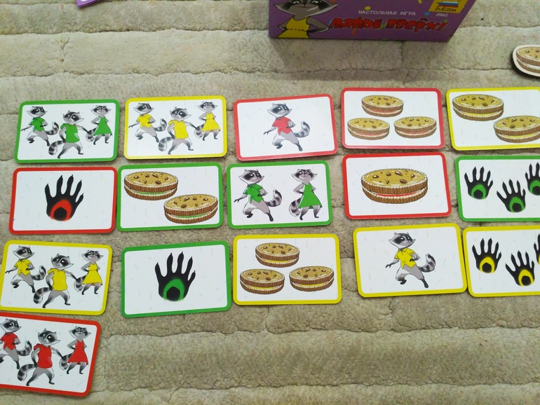 Лапы вверх - подарили год назад, попробовали , то ли не поняли то ли игра странная не играли больше. Сейчас тоже самое. В игре нужно выкладывать карты и собирать сеты: