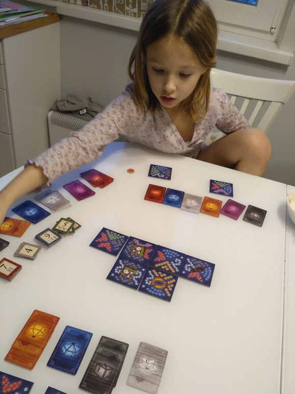 Игра с простыми правилами, лёгкая на вид , но заставляющая думать. Сыграли уже много много партий. Мне и детям очень понравилось!! Небольшая коробка, мне кажется хорошо должна пойти с ровесниками, удобно брать в школу