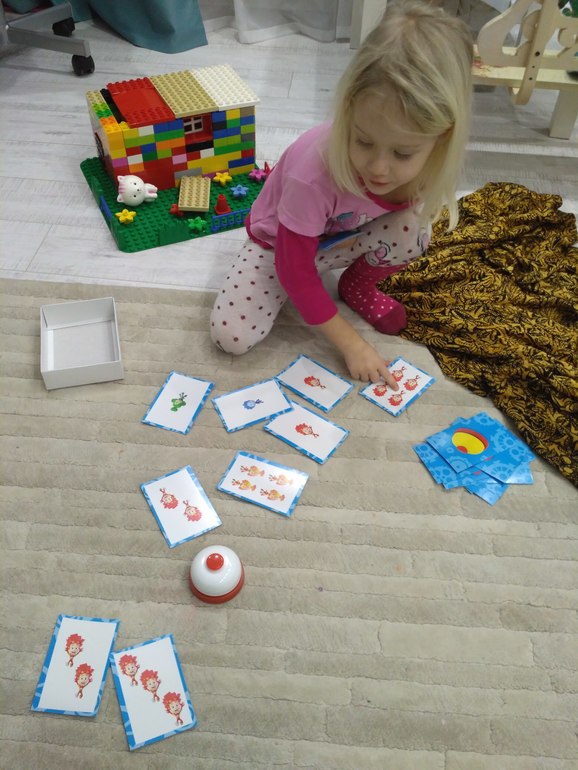 Аналог Халли Галли, бюджетный вариант с фиксиками, тоже нравится Даше, играем не на скорость. Закрепляет состав числа 5.