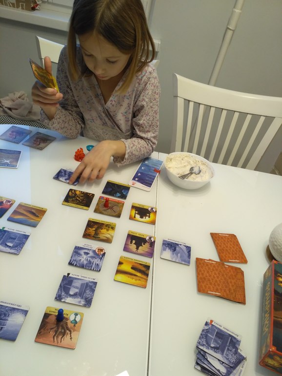 Зато вторая игра "Угадай желание " была заиграна!! Возраст 8+, но Даша после нескольких партий слушая мои рассуждения поняла смысл и тоже может играть с нами.