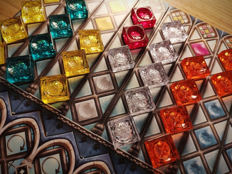 Да, именно стёклышки, а не плиточки как в классическом Азуле (хотя тоже пластиковые), мы будем старательно выкладывать на свои планшеты, ведь теперь мы стекольщики, украшающие витражами соборы Синтры...