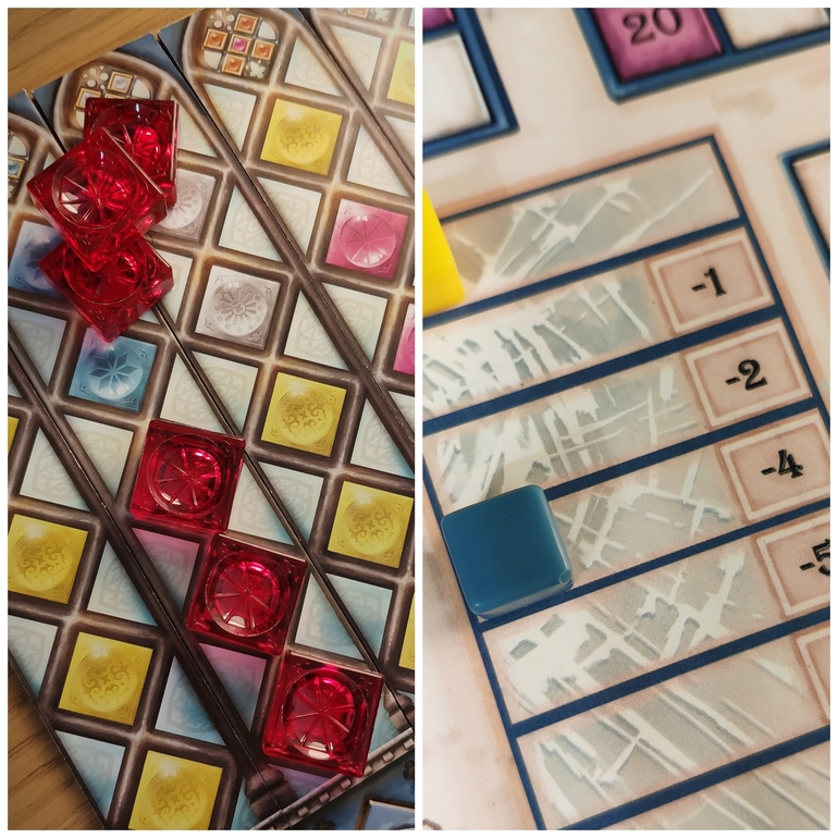Пару раз к нам присоединялся мой супруг, но после проигрышей, окрестил игру женской и больше не решался составить нам компанию, хотя и торжественно обещал играть со мной в Азул после отъезда мамы ☺️Нам же с мамой Азул: Витражи Синтры доставил огромное эстетическое, тактильное и эмоциональное удовольствие, и занял почетное место среди любимых игр наряду с Румми и Пэчворком.